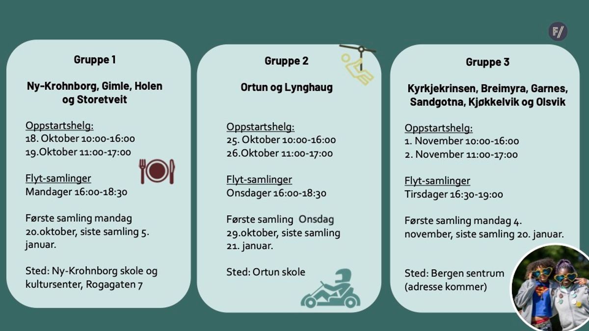I Bergen har vi 3 Flyt-grupper. Gruppene er delt inn basert på skoler.
